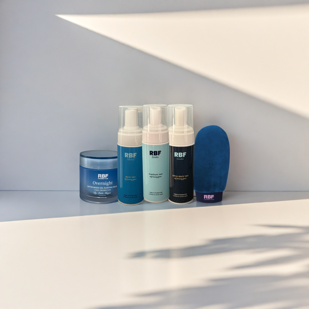 Your full glow routine in one kit – Mask, Mitt + our Tan for that, natural bronze.